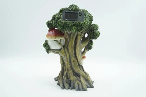 Create a fairy garden with this solar powered tree house. The house lights up once it gets dark and illuminates from inside. The front of the tree house has a face grown into the trunk.