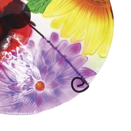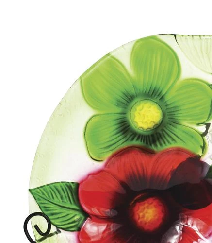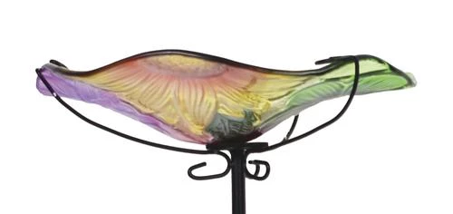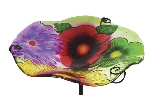 Brighten up your garden or yard with this beautifully detailed glass birdbath. Each bird bath measures 11″ diameter and stand 26″ tall with the stand (included). Made for outdoor use.