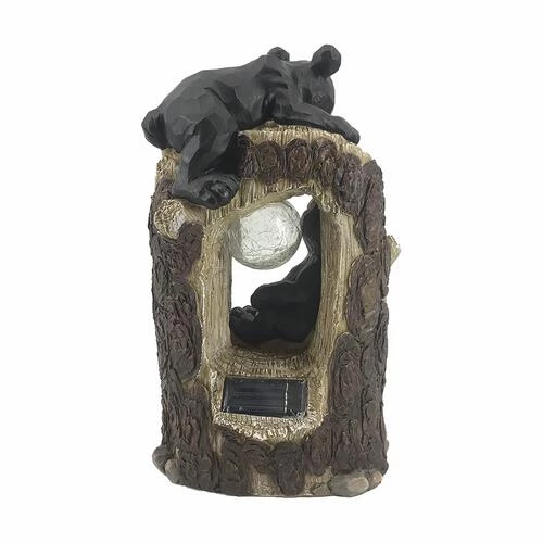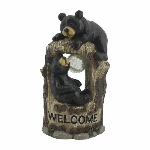 These cute little bears will welcome your guests as they arrive at you home or garden. The bears are playing in an old tree trunk that includes a solar globe that lights up each night. The light is solar powered and will run for 6-8 hours on a full charge, no need for electrical cords!