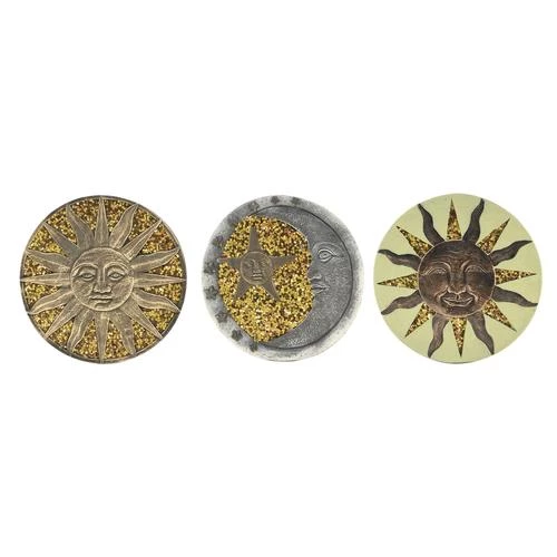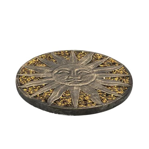 These beautiful stepping stones sparkle when the sun shines upon the glittery gold flakes. The stepping stones are made from durable cement and are available in three designs.