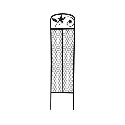 This charming rustic bronze pot trellis brings on trend style to your garden! Rustic gridwork inside the trellis frame give support to your climbing vines and flowers. The hummingbird and floral accents at the top make this a garden or patio showcase for your blooms. The free standing sturdy base presses into your garden or fits in a pot of 12-in diameter. Sturdy steel construction lets you weave and train your climbers. May be used free standing, as a garden entrance, patio decor, or stand-alone for climbers.