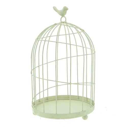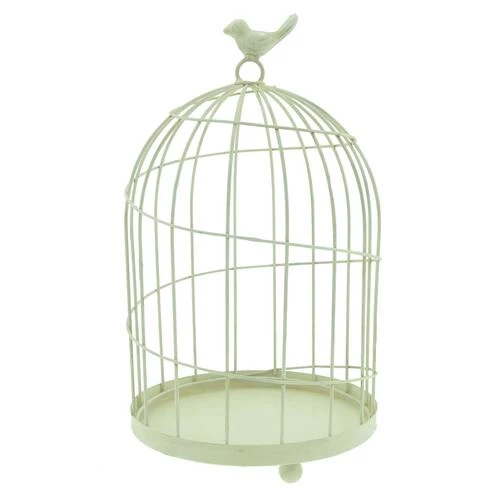 A lovely Decorative metal yellow bird cage topped with a bird finial. The bird cage can be set on any table or easily hung. Get creative and create a charming table display using the cage as the focal piece.