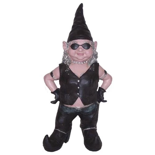 This 15″ Tall Biker Babe Gnome Garden Figurine is dressed in classic black leather pants, closed black leather vest and gnome hat. She can be used indoors or outdoors. This figurine is made of 50% Polyresin and 50% Stone Powder. Each Biker Babe Gnome weighs 6.25 pounds and is 5.7″ wide, 6.9″ deep and 15″ high. The perfect garden accent for the motorcycle enthusiast!