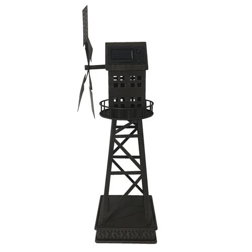 Add some rustic charm to your garden, patio or yard with this lighthouse windmill solar statue. During the day, this energy-efficient solar powered statue utilizes the sunlight to charge its internal batteries. After dark, it will automatically turn on, emitting a soft attractive glow. Sit back and relax while you watch the windmill turn in the wind and emit light at night.