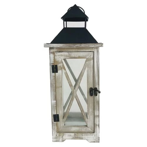 Add some charm to your home with this rustic wooden lantern. Its durable hand-painted finish will add a touch of farmhouse chic to your patio, garden, or deck.
