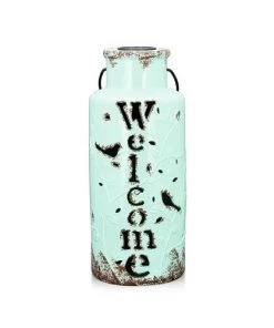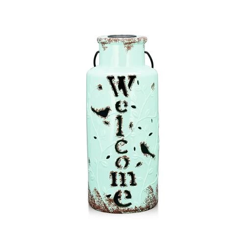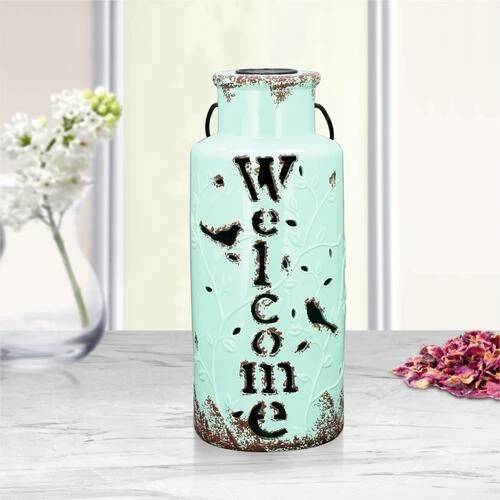 This large Ceramic Solar Lantern is beautifully crafted with Welcome cut-out, Bird and Leaf designs.