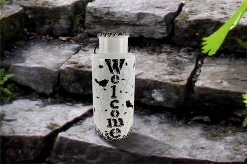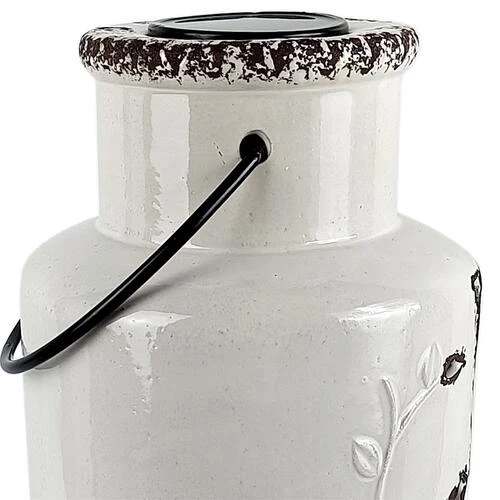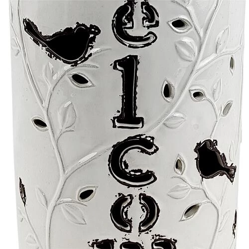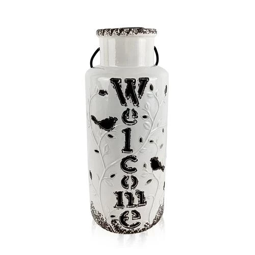 This large Ceramic Solar Lantern is beautifully crafted with Welcome cut-out, Bird and Leaf designs.