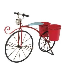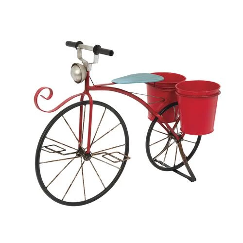 This Plant bicycle Stand, with its novelty design, will add a touch of whimsicality to the garden. A unique and nostalgic design, it is designed in the shape of a bicycle with intricate detailing. The planter offers storage space for one plant or pot. This Plant Peddler Stand can be placed on the porch or on the patio.