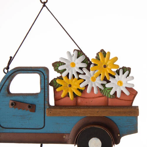 - Colorful truck with decorative flower pot and seasonal saying