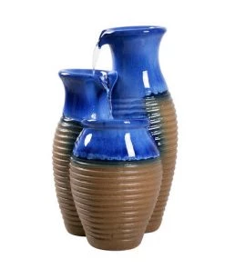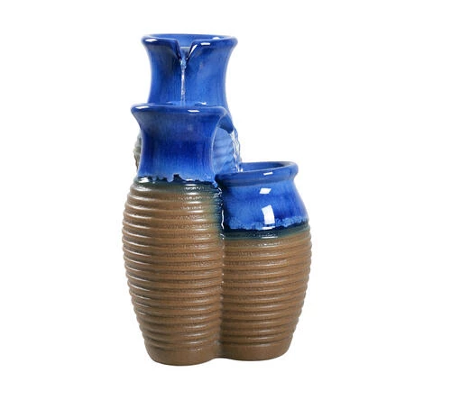 Add elegance to your home or garden with this exquisitely designed indoor or outdoor fountain. It captures the soothing sound of water as it trickles down the three tiered bowls. The ceramic vases are finished in a beautiful high-gloss glaze.