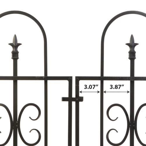 This 36’H x 36’W Broadway Border Fence Gate works with the fence panel to provide an easy-to-install, decorative edging for a walkway or garden barrier. This border fence features elegant arches and finials with decorative scrollwork to add elegance to any yard.