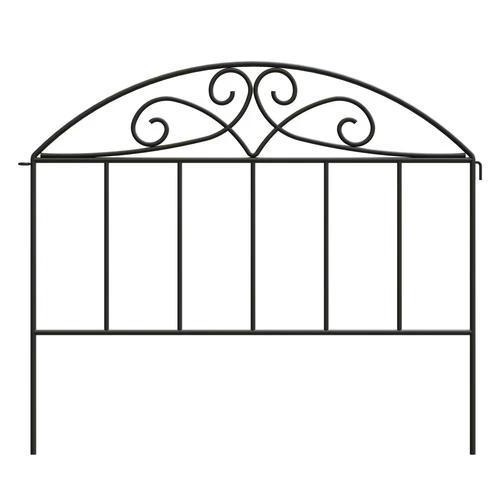 Elegant classical fencing in an easy-to-install sectional format. Create a dazzling border in your garden using these border fence sections. Classical arched top and scroll work flourishes adorn each fence section. The sections will easily maneuver to form an attractive and stable border. The legs stake easily into soil, while the black color enhances the surrounding greenery. The steel construction forms a lasting fence, and the powder coated finish protects the metal from the elements. Create a stylish and functional border around your plants or walkways.