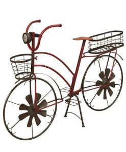 This Plant bicycle Stand, with its LED solar light and novelty design, will add a touch of whimsicality to the garden. A unique and nostalgic design, it is designed in the shape of a bicycle with intricate detailing. The planter offers storage space for one plant or pot. This Plant Peddler Stand can be placed on the porch or on the patio.