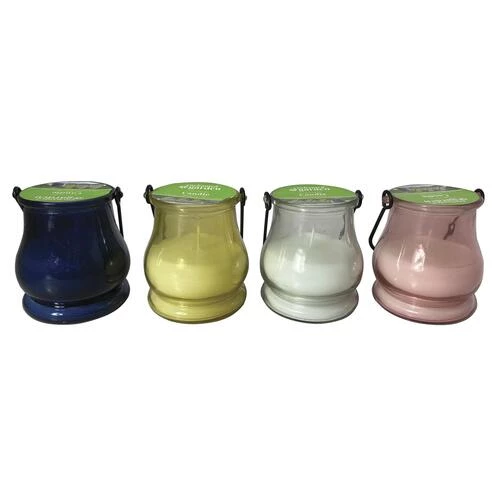 The lantern jar citronella candle is a beautifully decorative citronella candle, yet a very effective defense against biting mosquitoes utilizing 3% citronella oil and 6.5 oz. white wax in the candle. The candle is 4″ H x 3.5″ diameter, and there are four assorted colors to choose from: Red, Blue, Green or Yellow.
