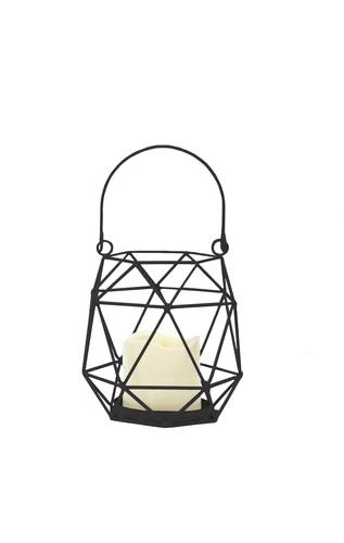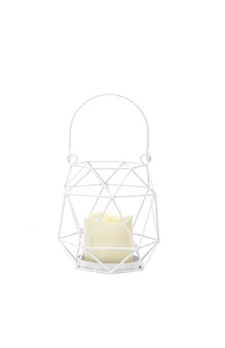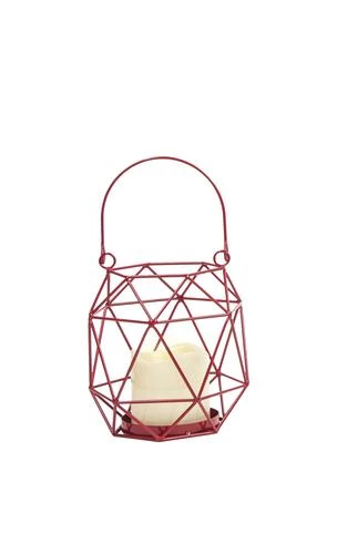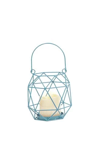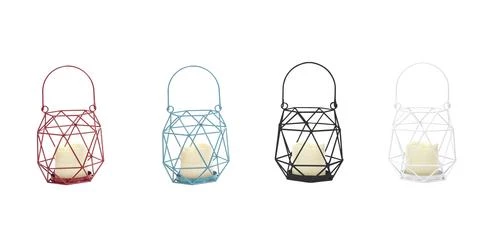 Geometric shaped lantern with LED Candle. This lantern comes in 4 colors to choose from and includes a 5 hour timer. The candle requires 2-AA batteries (included)