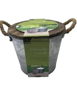 Bring farmhouse style decor to your outdoor living space with our Giant Galvanized Metal Bucket Citronella Candle! This candle comes with a distressed wooden lid to protect the wax from the elements when not in use and straw rope handles for easy mobility, these practical features also lend the candle that rustic feel that makes it totally unique. Set it on your front step or your back patio as a statement piece that helps keep the bugs away. For best results in deterring bugs, use this candle with our other citronella products to create a barrier of protection. After the candle has completely burned out, the bucket can be reused as chic storage or as a part of your decor!