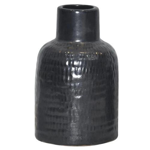 Simple yet dramatic. Bold yet understated. This ceramic vase, with its stark, black hue and modern feel, is perfect for a single, faux-flora stem for a burst of color or a subtle faux-branch of greenery for instant warm and elegance. It will certainly command attention wherever you display it and is as much at home in the bedroom as it is in the mudroom (and any and every room in between)?talk about versatility.