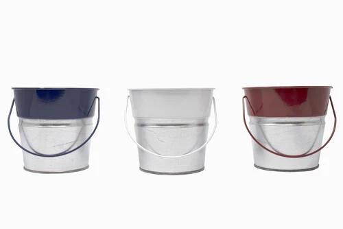 Get ready for Memorial Day, the 4th of July and summer in the USA with these 7 oz red, white and blue bucket citronella candles! These candles have a galvanized metal finish on the bottom with a painted top accent in the American flag colors of red white and blue. Each three pack comes with one candle in each color. Place them three to four feet apart to keep the bugs away from your BBQ party!