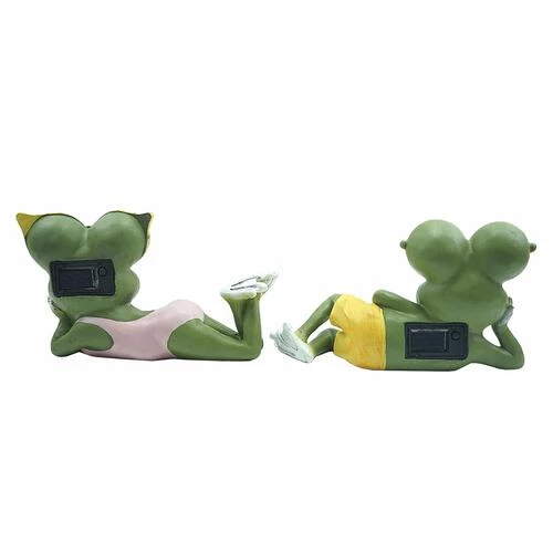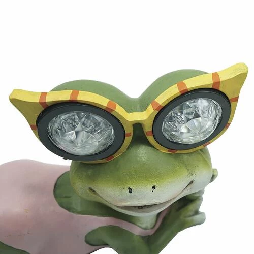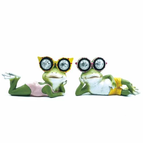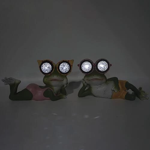 These frogs look like they are having fun in the sun in your backyard. The eyes are solar powered lights that automatically turn on at dusk and run for 6-8 hours each night.