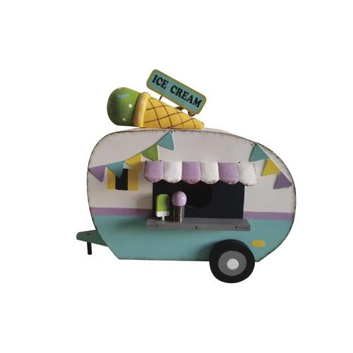 Showcase your garden or patio’s unique love for birds by hanging this inviting Ice Cream Cart birdhouse out for your feathered friends. Made of durable wood and featuring bright blue, purple and green colors this birdhouse captures the whimsy of a your very own roadside stop in your outdoor spaces.