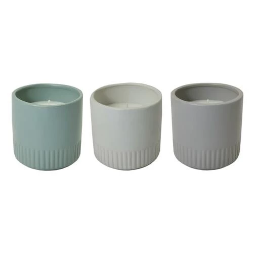 These 8-ounce Contemporary Ceramic Citronella Candles will add a classic and simple decorative touch to your outdoor space. The ceramic container in an assortment of muted colors (blue, white, and grey) features ridged detailing on the bottom that gives these candles a very subtle flair. They are the perfect size for placing on side tables as a finishing touch, or lining a long dining table to add a comforting glow! For best results, pair multiple citronella candles together around the perimeter of your outdoor space.