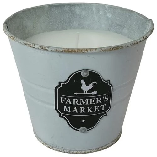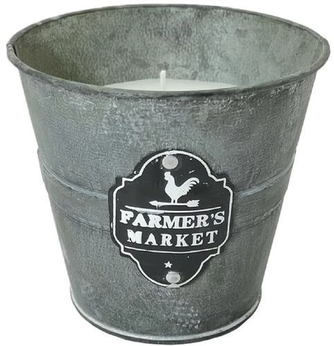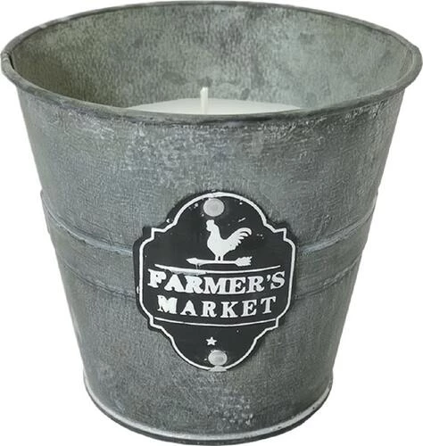 Add these quintessential farmhouse chic 8-ounce Farmer’s Market Citronella Bucket Candles to your outdoor decor to help create a cozy space! This small, metal bucket has a rustic and distressed finish in black, white or galvanized. It features a black and white metal cutout with a farmhouse design and the words “FARMER’S MARKET” on the front of the bucket. Whether you’re looking for a small, rustic touch to add to your patio or finishing off a full farmhouse space, you’ll love the details on this candle.