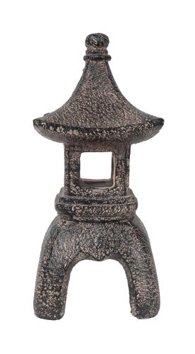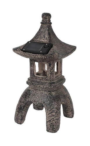The Enchanted Garden™ Small Solar Pagoda, is made of durable polyresin and features a two-tone stone like finish, with 1 warm white LED located inside the center of the pagoda. Place this light in a sunny location for optimal performance, as the solar panel uses the sun’s rays to charge the battery during the day. It automatically turns on at dusk for up to 8 hours of illumination.