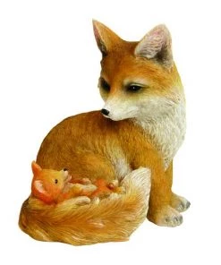 This beautifully hand-painted statue depicts a mother fox cradling her kit in her tail. A sweet reminder of a mother’s love and devotion to her young, this nurturing fox and her kit are sure to find a special place in your garden and in your heart.