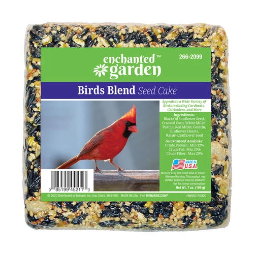 This bird seed cake is perfect for feeding your backyard feathered friends. It appeals to a wide variety of birds including cardinals, chickadees, and more.