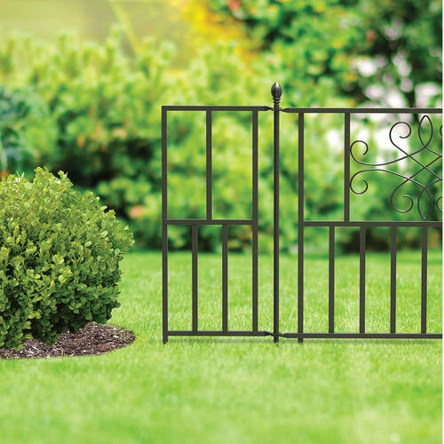 This end panel works in union with the Deluxe Scroll fence system, and stakes directly into the ground for sturdiness and support. The end panel offers a finishing touch to your fence line and creates a stately border to a garden bed or walkway. The powder coated finish provides a lasting, durable, weather resistant finish.