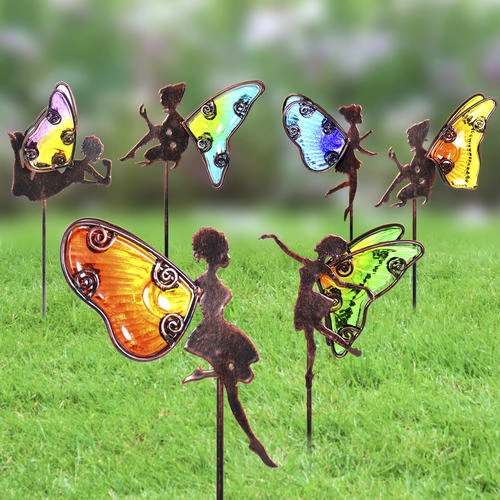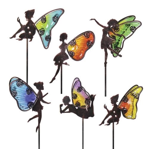 Decorate you yard with these beautiful fairy pot stakes. They come in 6 assorted styles and different colors wings.