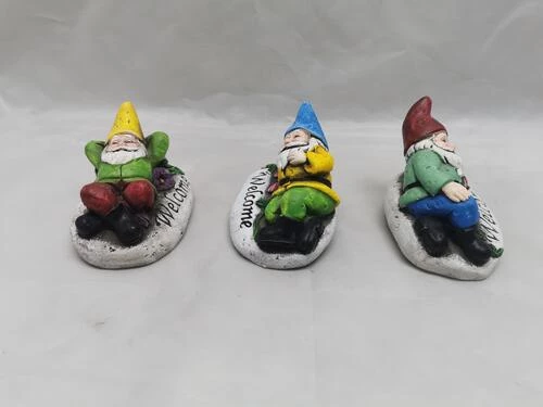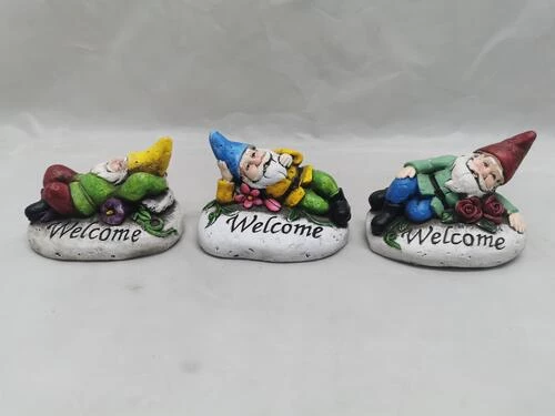 This collection of garden stones is a must for anyone who loves gnomes. These gnomes are relaxing in your garden as they welcome your guests to your home.