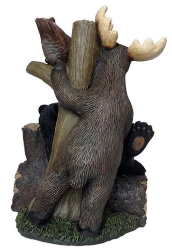 This welcome sign is the perfect whimsical addition to your outdoor décor. It depicts a moose tickling a sleeping bear with a feather while a curious owl watches on.