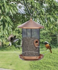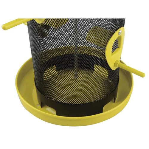 This yellow finch seed feeder provides birds multiple options to feed in their most natural positions, whether clinging to the screen or sitting on the perches or tray, even upside-down! The lift up lid roof for easy filling. Built-in drainage holes help to keep seeds dry.